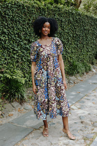DETAILS: 100% Cotton, High-Quality Wax Print Fabric, Dry Clean Only Recommended, Full Silhouette with Pockets and Elastic Backing. Handmade with love in Togo, West Africa. Coloring may vary slightly from image.