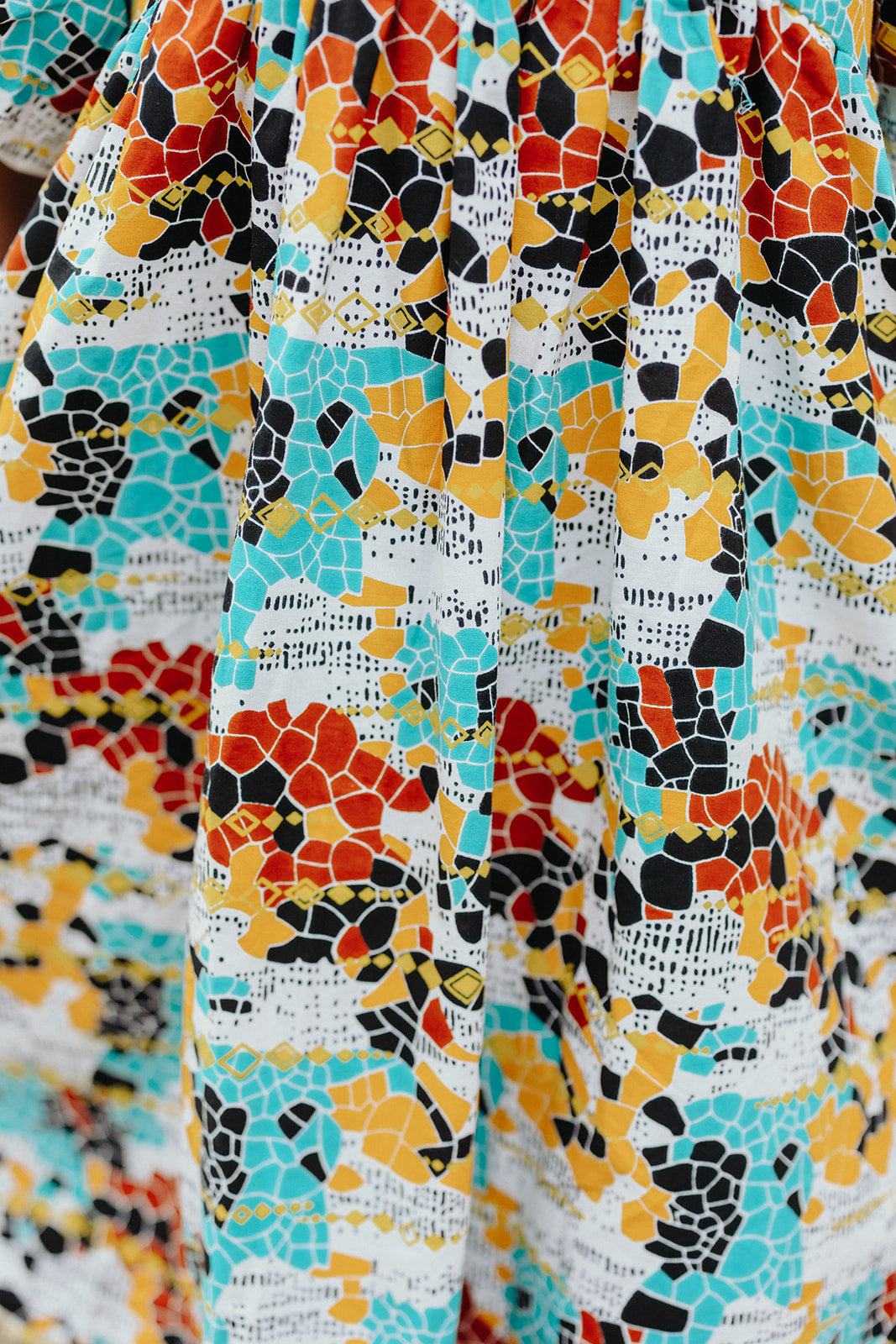 DETAILS: 100% Cotton, High-Quality Wax Print Fabric, Dry Clean Only Recommended, Full Silhouette with Pockets and Elastic Backing. Handmade with love in Togo, West Africa. Coloring may vary slightly from image.